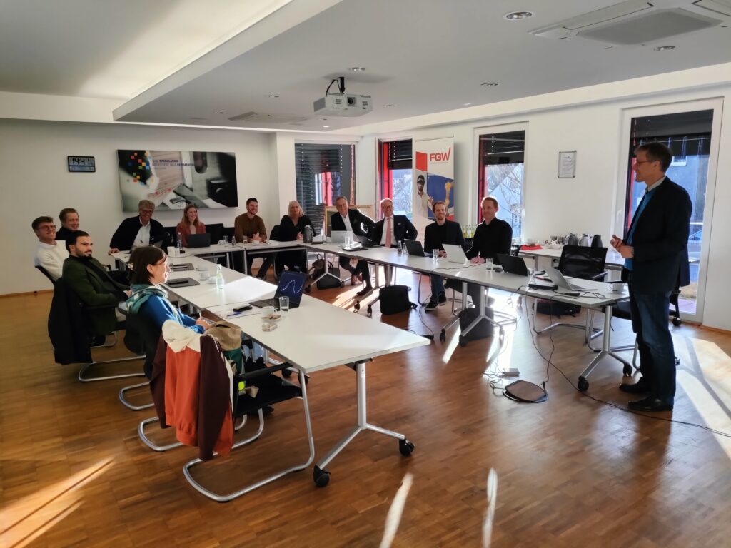 Am 13.02.2025 fand die Kick-Off Veranstaltung zu dem durch das BMFTR und die Europäische Union geförderten und vom PTKA aus Karlsruhe betreuten Projekt „Digitale Kollaboration in internationalen Netzwerken: Eine Kompetenzplattform für produzierende Unternehmen (DiCoLab)“ mit Vertretern der acht geförderten Projektpartnern aus der bergischen Forschung und Industrie in der FGW und unter Teilnahme des Projektträgers statt. Der Fokus des Treffens lag darauf das gesamte Projektteam auf eine gemeinsame Basis zu bringen, um so einen Grundstein für eine erfolgreiche Zusammenarbeit zu legen. Neben der Kurzvorstellung der übergeordneten Projektziele, der Zeitplanung und der angestrebten Projektmeilensteine hatte jeder Teilnehmende die Gelegenheit, seine individuelle Motivation und die angestrebten Ziele zu erläutern. Dabei haben gerade die Einblicke in die potenzielle industrielle Anwendung von DiCoLab durch die Praxispartner den übrigen Veranstaltungsteilnehmern interessante Einblicke in mögliche praxisnahe Use-Cases für die Umsetzung von DiCoLab geboten und waren damit Grundlage für eine anregende Diskussion und einen ersten Workshop, der sich im letzten Teil des Treffens mit der Frage beschäftigte, welche Schwerpunkte, Erfahrungen und Anmerkungen sich für die Konzeptionierung des DiCoLab-Modells aus Anwenderperspektive ergeben.
